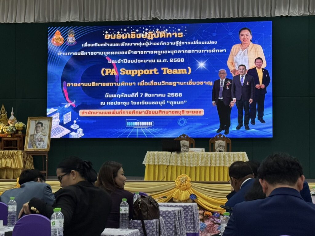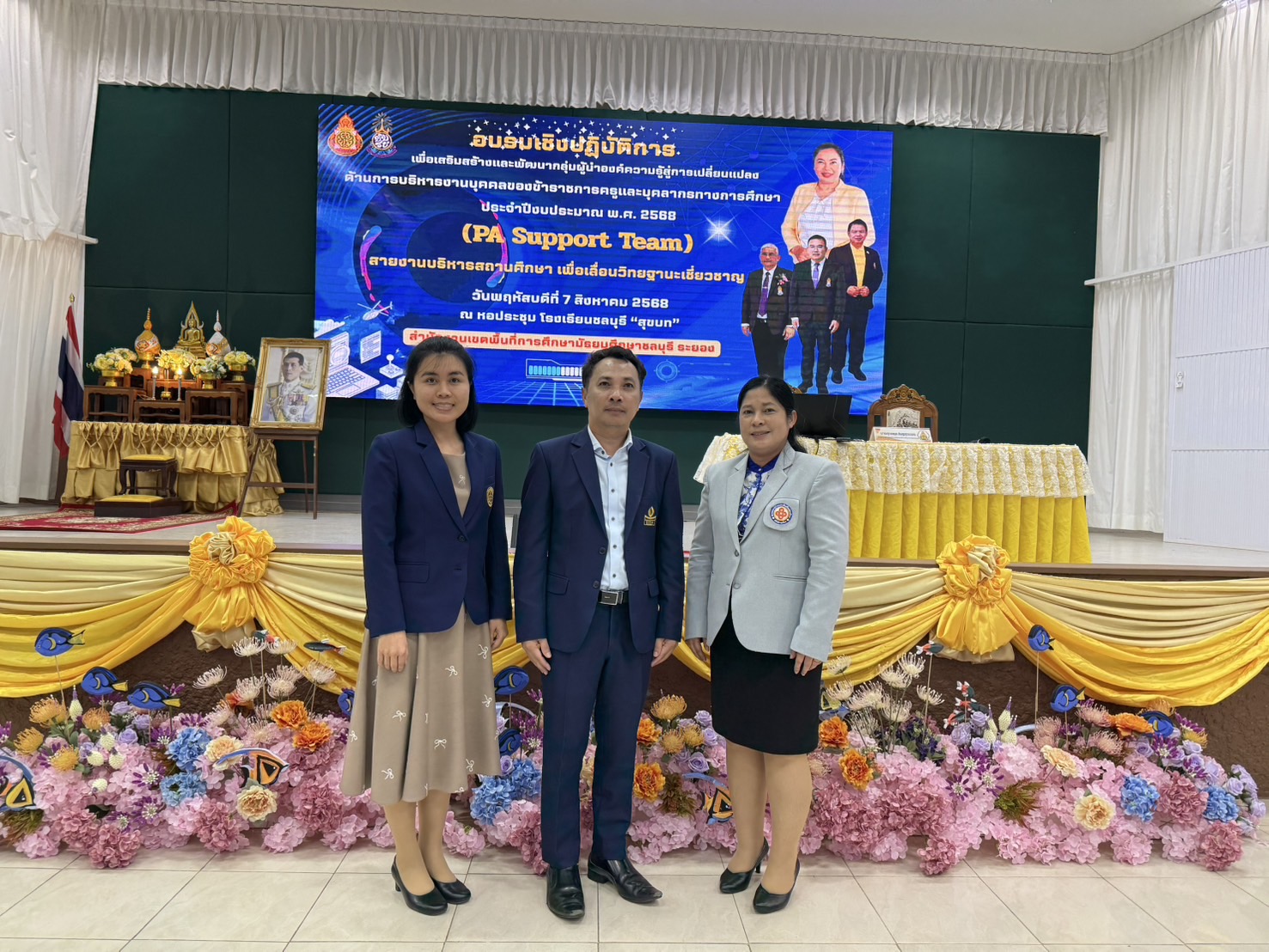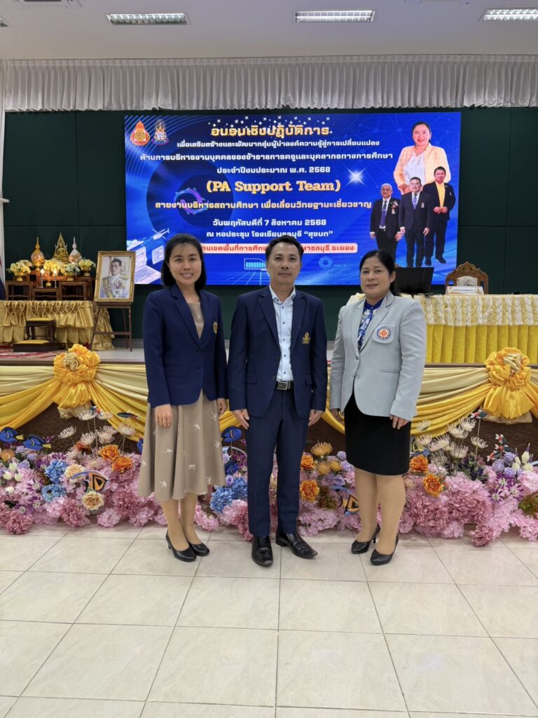 วันพฤหัสบดี ที่ 7 สิงหาคม 2568 นายปิยบุตร เอมโอฐ ผู้อำนวยการโรงเรียนนิคมวิทยา พร้อมด้วย นางสาวญาณิศา โอภากิจวรกุล รองผู้อำนวยการกลุ่มบริหารงานบุคคล และนางสาวกนก คำแดง รองผู้อำนวยการกลุ่มบริหารงบประมาณ เข้าร่วม “การอบรมเชิงปฏิบัติการเพื่อเสริมสร้างและพัฒนากลุ่มผู้นำองค์ความรู้สู่การเปลี่ยนแปลงด้านการบริหารงานบุคคลของข้าราชการครูและบุคลากรทางการศึกษา (PA Support Team)” ประจำปีงบประมาณ 2568 ณ หอประชุม โรงเรียนชลบุรี “สุขบท” จังหวัดชลบุรี