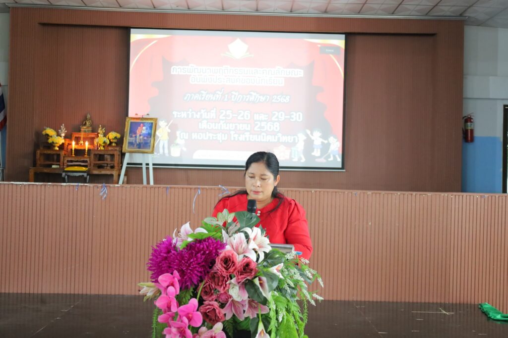 วันพฤหัสบดีที่ 25 กันยายน 2568 นายปิยบุตร เอมโอฐ ผู้อำนวยการโรงเรียนนิคมวิทยา มอบหมายให้ นางสาวกนก คำแดง รองผู้อำนวยการกลุ่มบริหารงบประมาณ เป็นประธานในพิธีเปิด “กิจกรรมพัฒนาพฤติกรรมและคุณลักษณะอันพึงประสงค์ของนักเรียน ภาคเรียนที่ 1 ปีการศึกษา 2568” ระหว่างวันที่ 25 – 30 กันยายน 2568 ณ หอประชุมราชพฤกษ์ โรงเรียนนิคมวิทยา