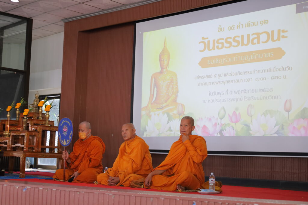 วันพุธ ที่ 5 พฤศจิกายน 2568 นายปิยบุตร เอมโอฐ ผู้อำนวยการ โรงเรียนนิคมวิทยา พร้อมด้วยรองผู้อำนวยการโรงเรียน คณะครู บุคลากรทางการศึกษา และนักเรียนชั้นมัธยมศึกษาปีที่ 2/7-2/11 ร่วมทำบุญตักบาตร ข้าวสาร อาหารแห้ง พระสงฆ์ 5 รูป เนื่องใน วันธรรมสวนะ ณ หอประชุมราชพฤกษ์ โรงเรียนนิคมวิทยา