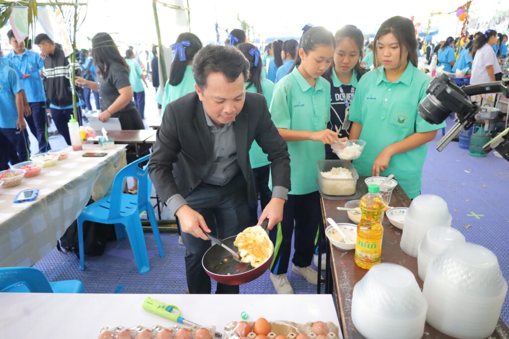 นายปิิยบุตร เอมโอฐ ผู้อำนวยการโรงเรียน เป็นประธานในพิธีเปิิดกิจกรรม และเดินเยี่ยมชมกิจกรรมประกวดบูธขายอาหาร กิจกรรม Top Chef มือใหม่ กิจกรรมการขายออนไลน์ กิจกรรมประกวดธิดาเกษตร ณ อาคารอเนกประสงค์ โรงเรียนนิคมวิทยา