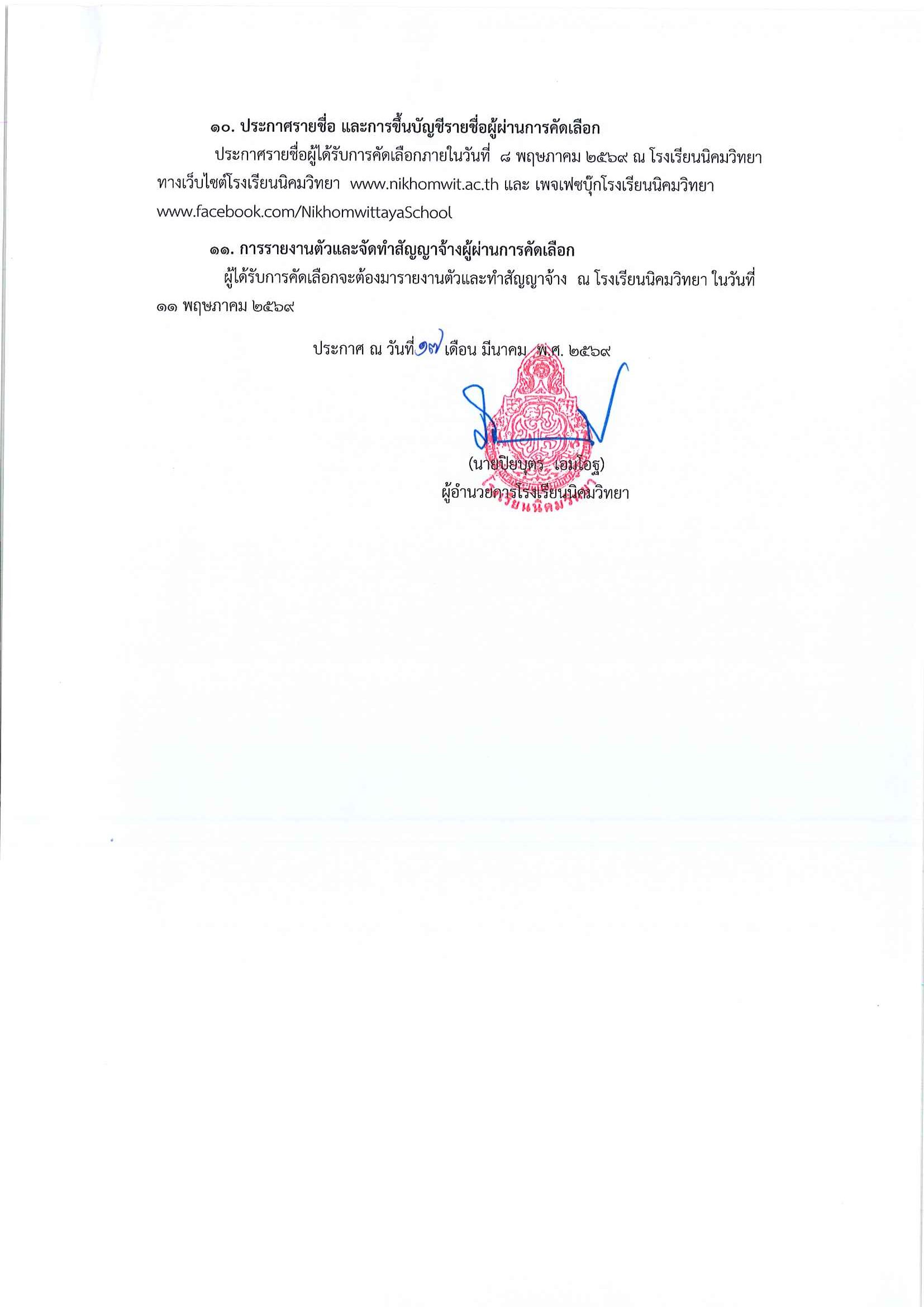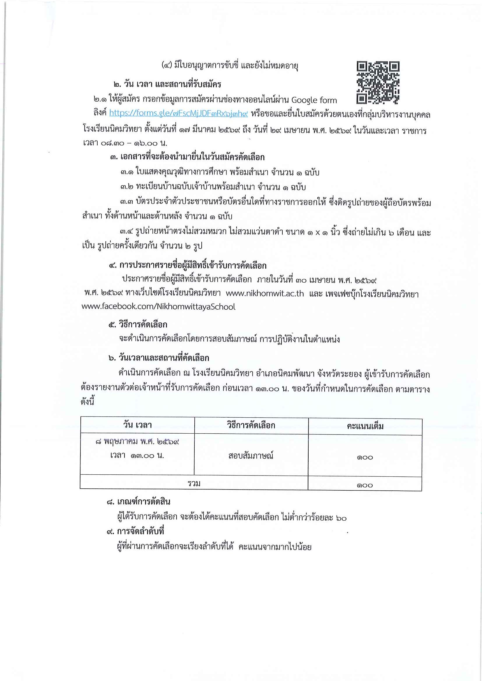 ยื่นใบสมัครด้วยตนเองที่กลุ่มบริหารงานบุคคลโรงเรียนนิคมวิทยา ตั้งแต่วันที่ 17 มีนาคม 2569 ถึง วันที่ 29 เมษายน พ.ศ. 2569