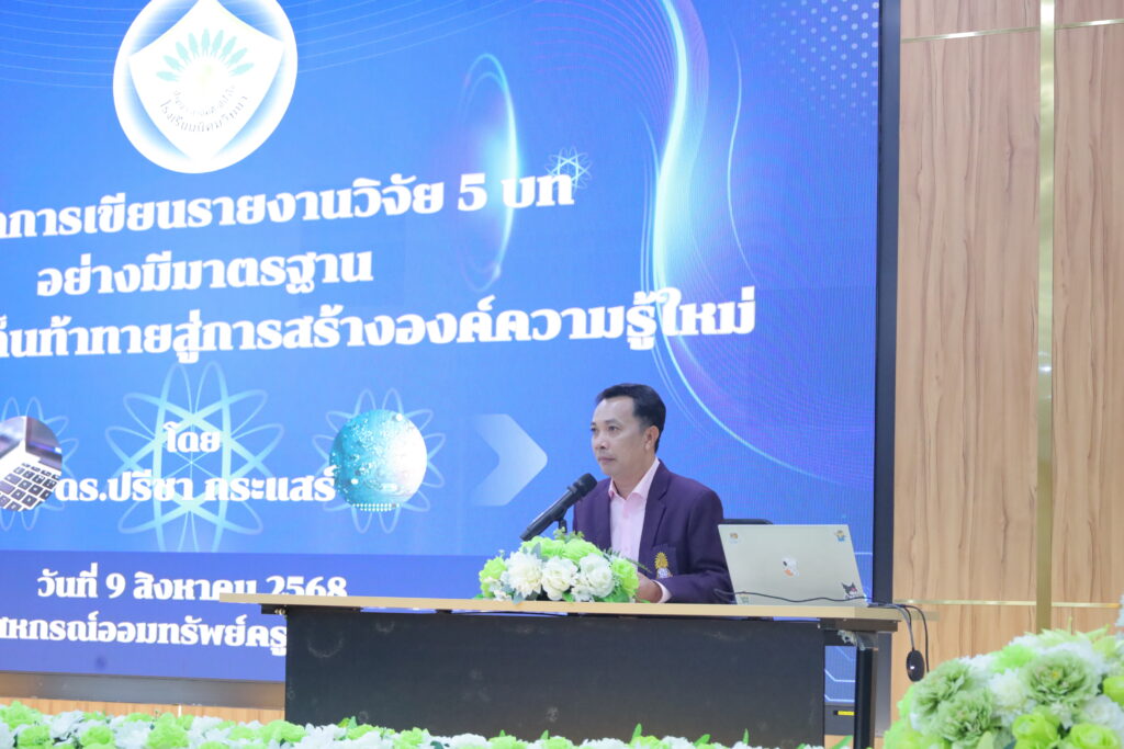 อบรมเชิงปฏิบัติการด้านการวิจัยเพื่อพัฒนาศักยภาพครูและบุคลากรในหัวข้อเรื่อง เทคนิคการเขียนรายงานวิจัย ๕ บทอย่างมีมาตรฐานเชื่อมโยงประเด็นท้าทาย สู่การสร้างองค์ความรู้ใหม่