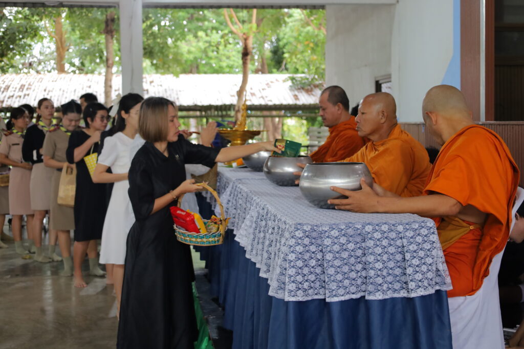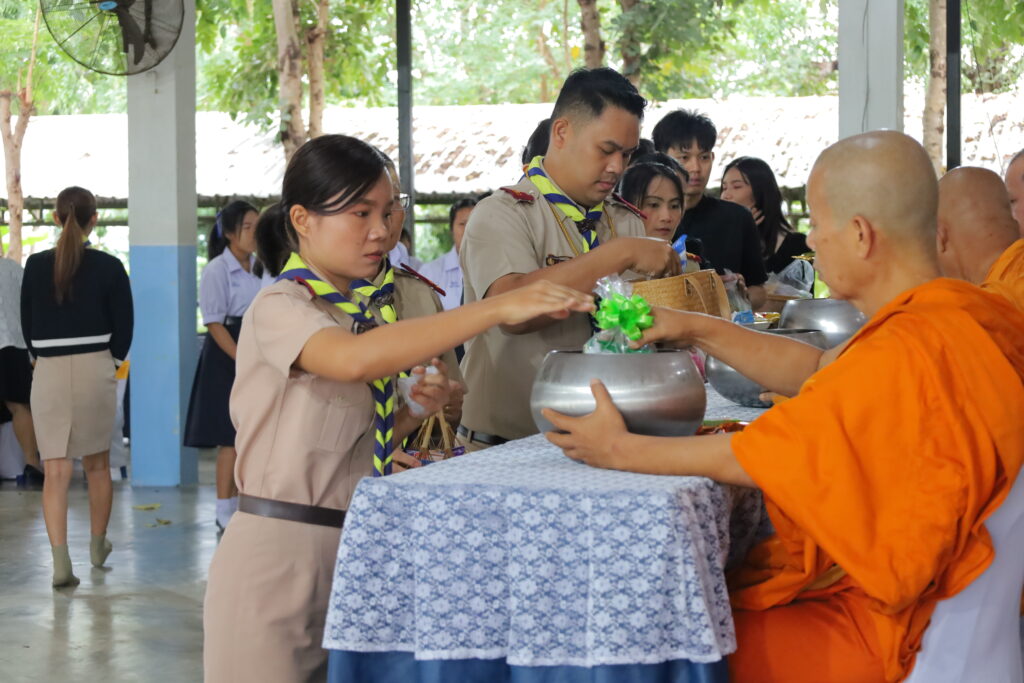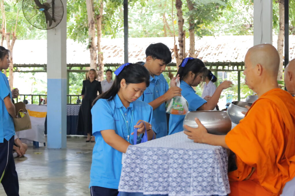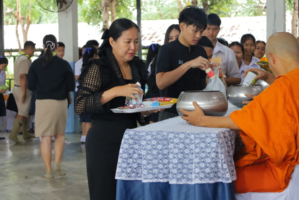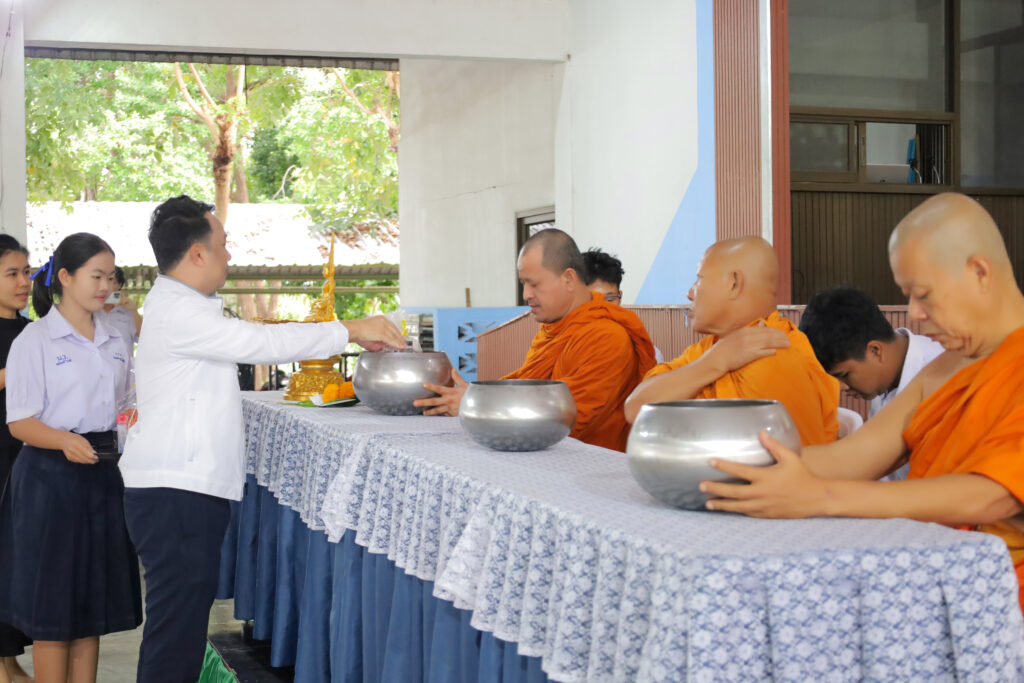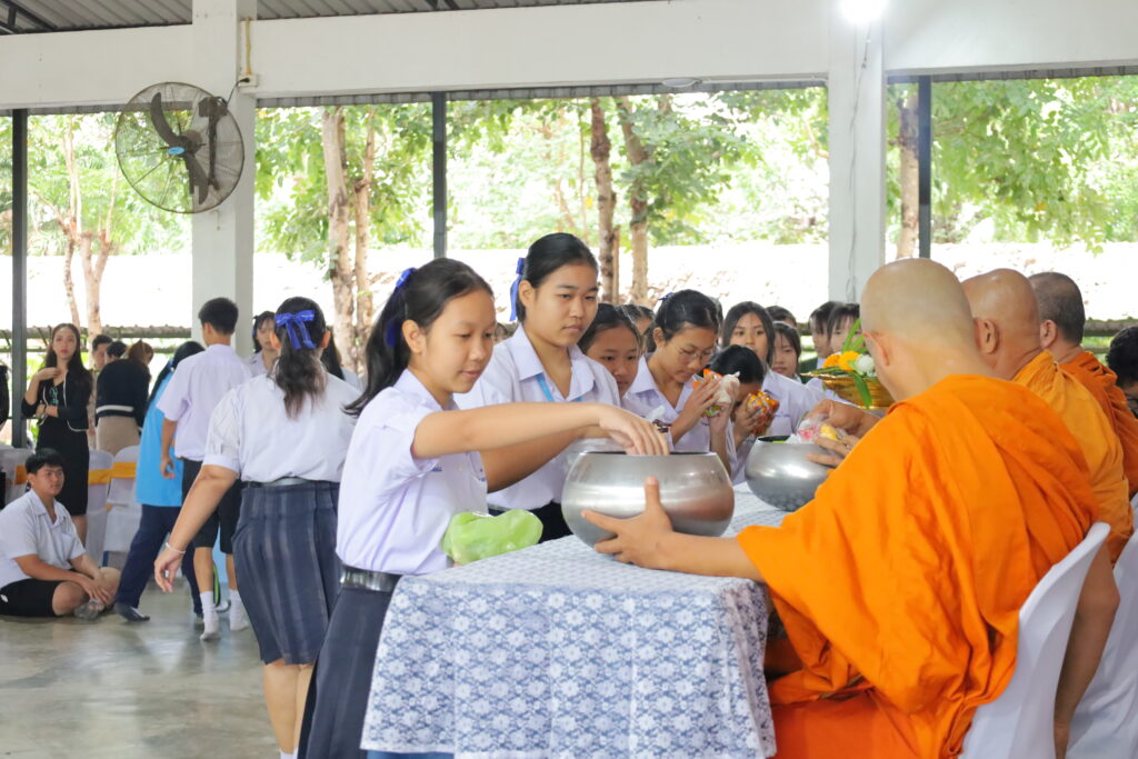 วันพฤหัสบดีที่ 20 พฤศจิกายน 2568 นายปิยบุตร เอมโอฐ ผู้อำนวยการโรงเรียนนิคมวิทยา พร้อมด้วยคณะผู้บริหาร คณะครู บุคลากรทางการศึกษาและนักเรียนชั้นมัธยมศึกษาปีที่ 4/1-4/9 ร่วมทำบุญตักบาตร ข้าวสาร อาหารแห้ง พระสงฆ์ 3 รูป เนื่องในวันธรรมสวนะ ณ หอประชุมราชพฤกษ์ โรงเรียนนิคมวิทยา