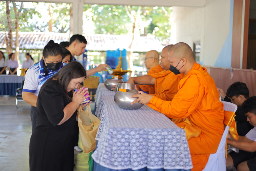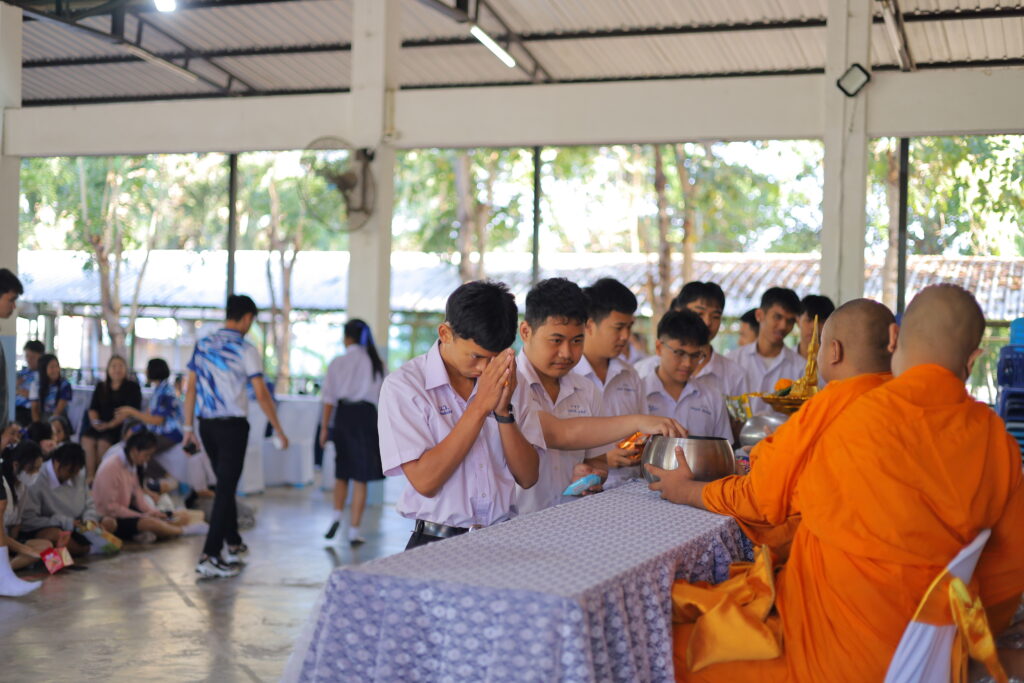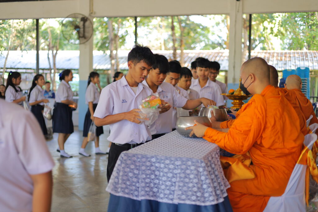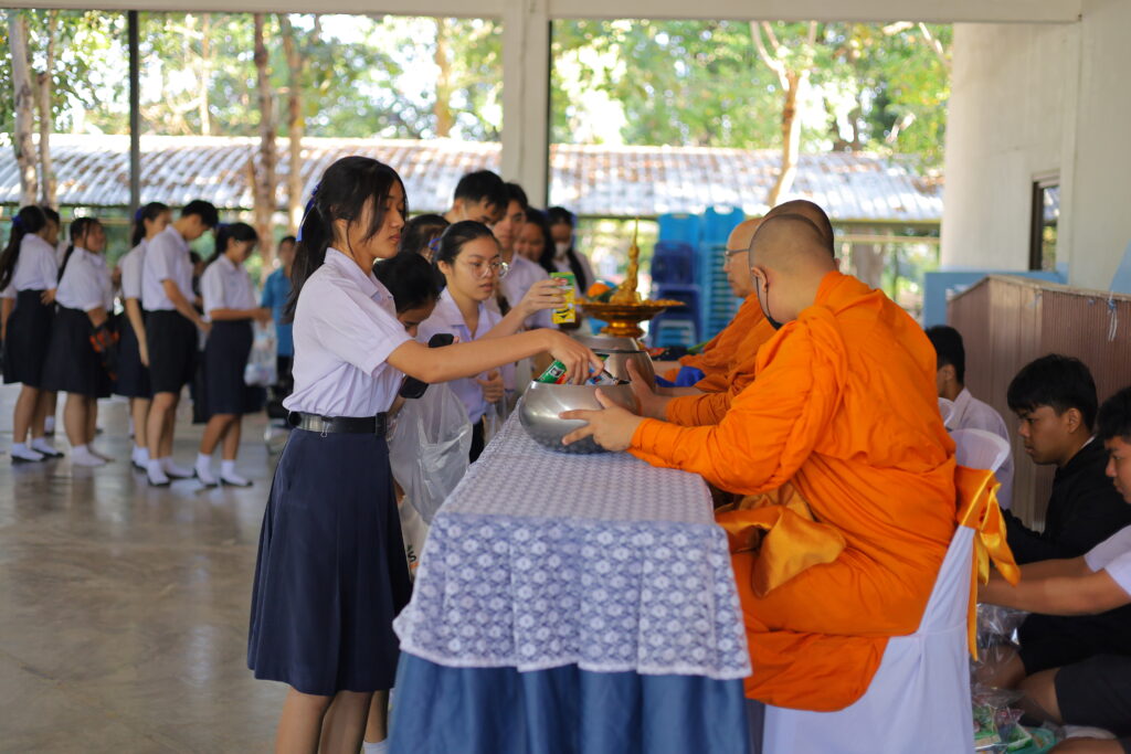 วันศุกร์ที่ 19 ธันวาคม 2568 คณะผู้บริหาร คณะครู บุคลากรทางการศึกษาและนักเรียนชั้นมัธยมศึกษาปีที่ 6/1-6/8 ร่วมทำบุญตักบาตร ข้าวสาร อาหารแห้ง พระสงฆ์ 3 รูป เนื่องในวันธรรมสวนะ ณ หอประชุมราชพฤกษ์ โรงเรียนนิคมวิทยา